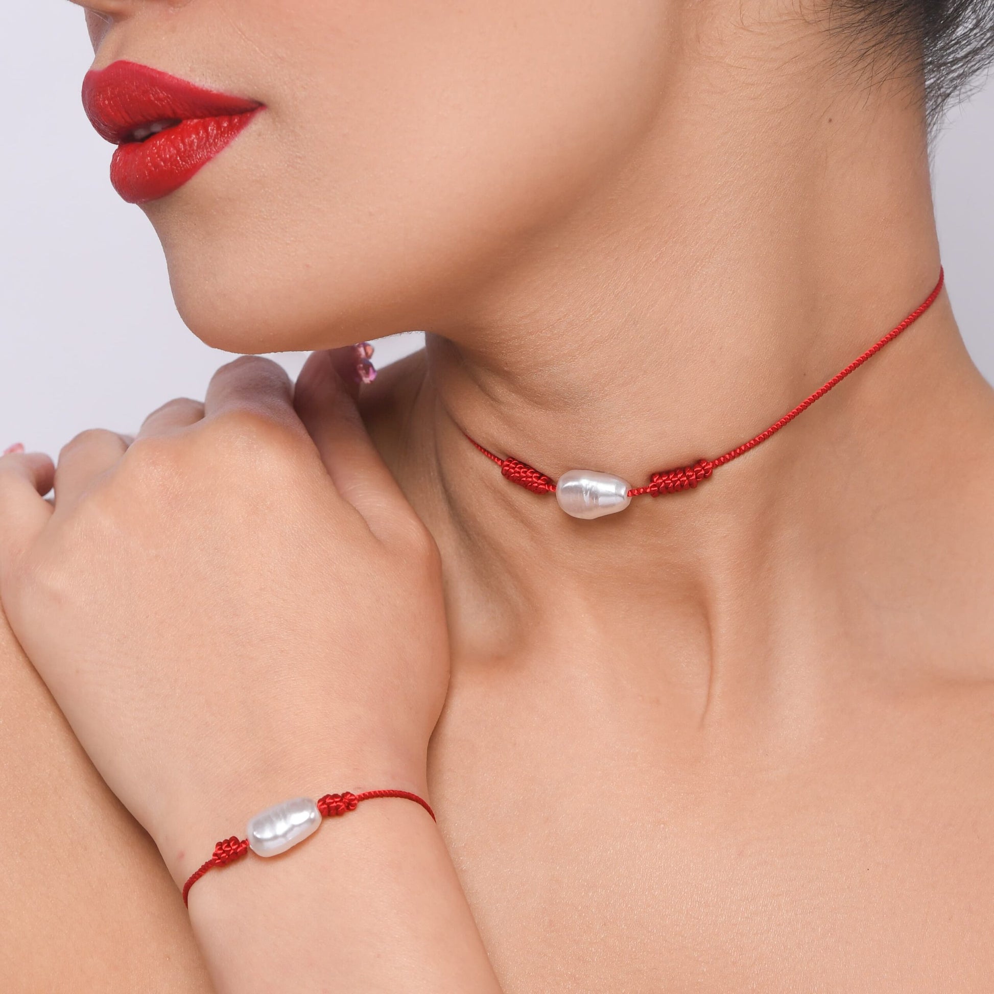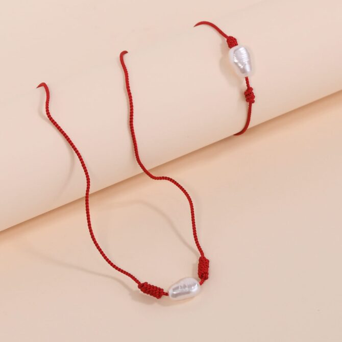 Un ensemble collier+ bracelet délicat avec une perle en forme d’amande, alliant douceur et féminité avec des nœuds pour un maintien sûr.