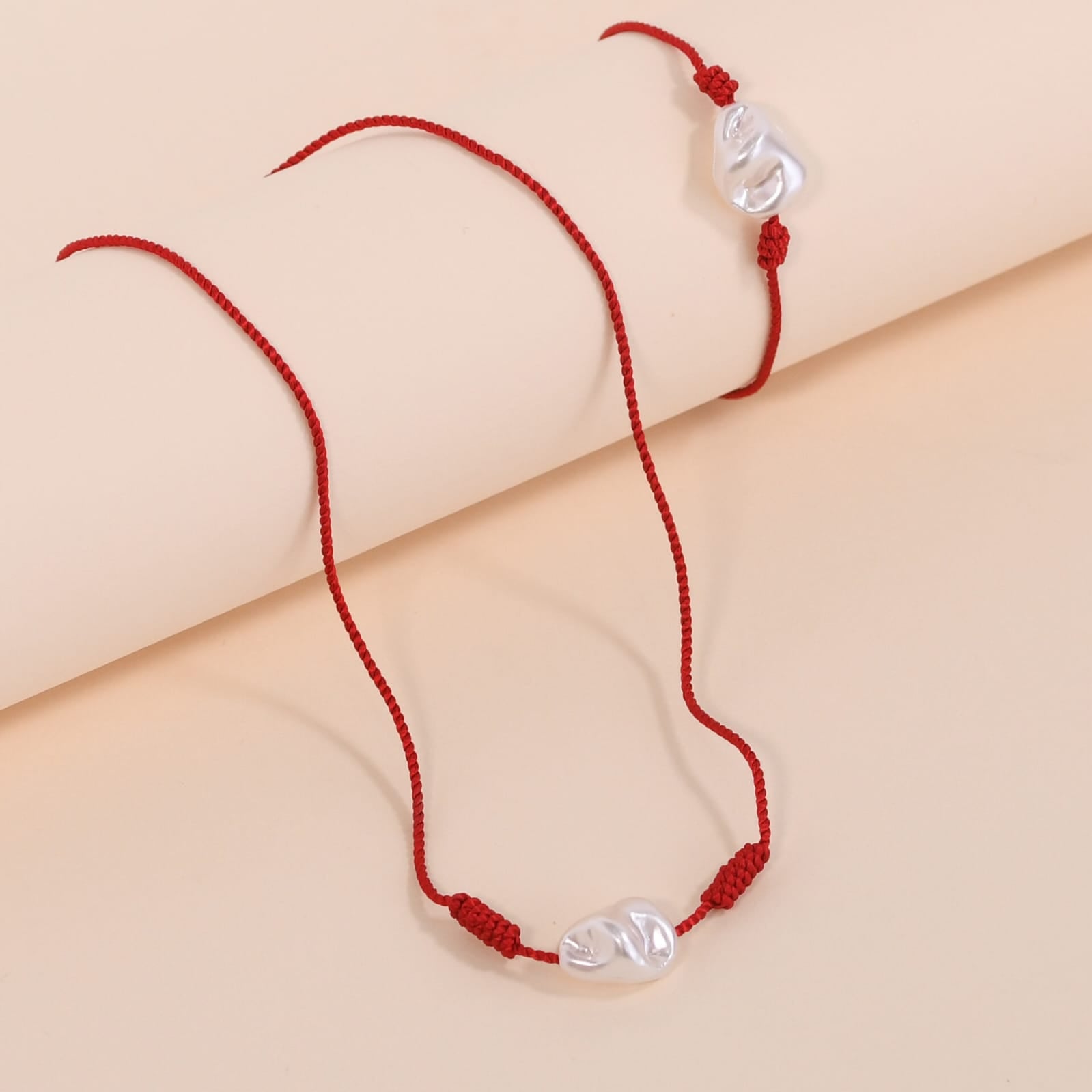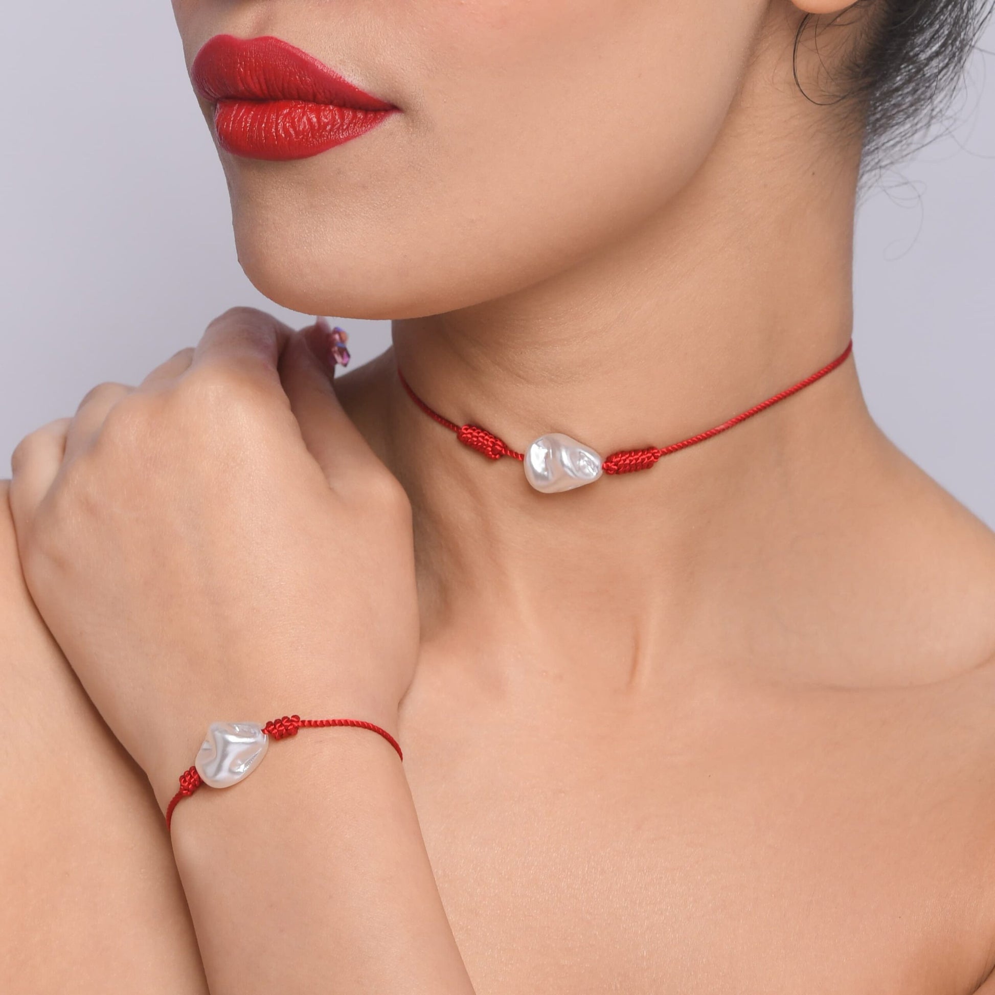Un ensemble collier + bracelet unique avec une perle spéciale, maintenue par des nœuds raffinés, pour une touche d’originalité.