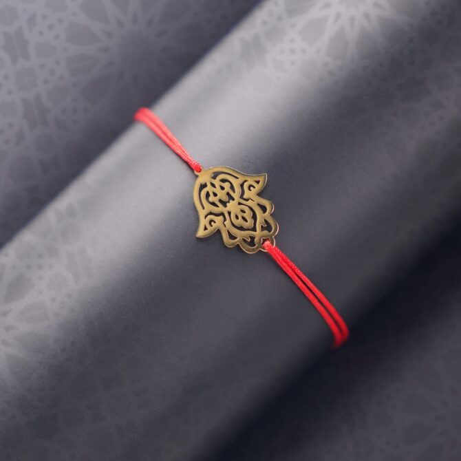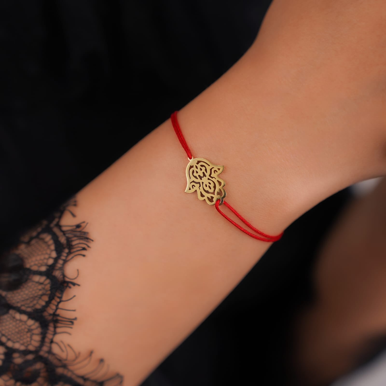 Le Khmissa est un cordon rouge ajustable avec une khmissa en acier inoxydable doré, symbole de protection et de chance, alliant tradition et modernité.
