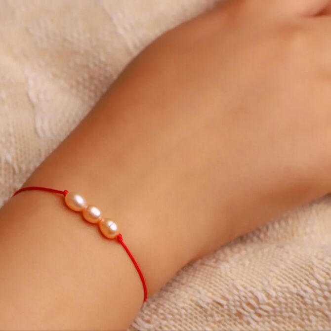 Apportez une touche de chaleur méditerranéenne à votre poignet avec « Livia ». Son cordon rouge vibrant est sublimé par 3 perles de culture saumonées, un symbole d’élégance douce et lumineuse.