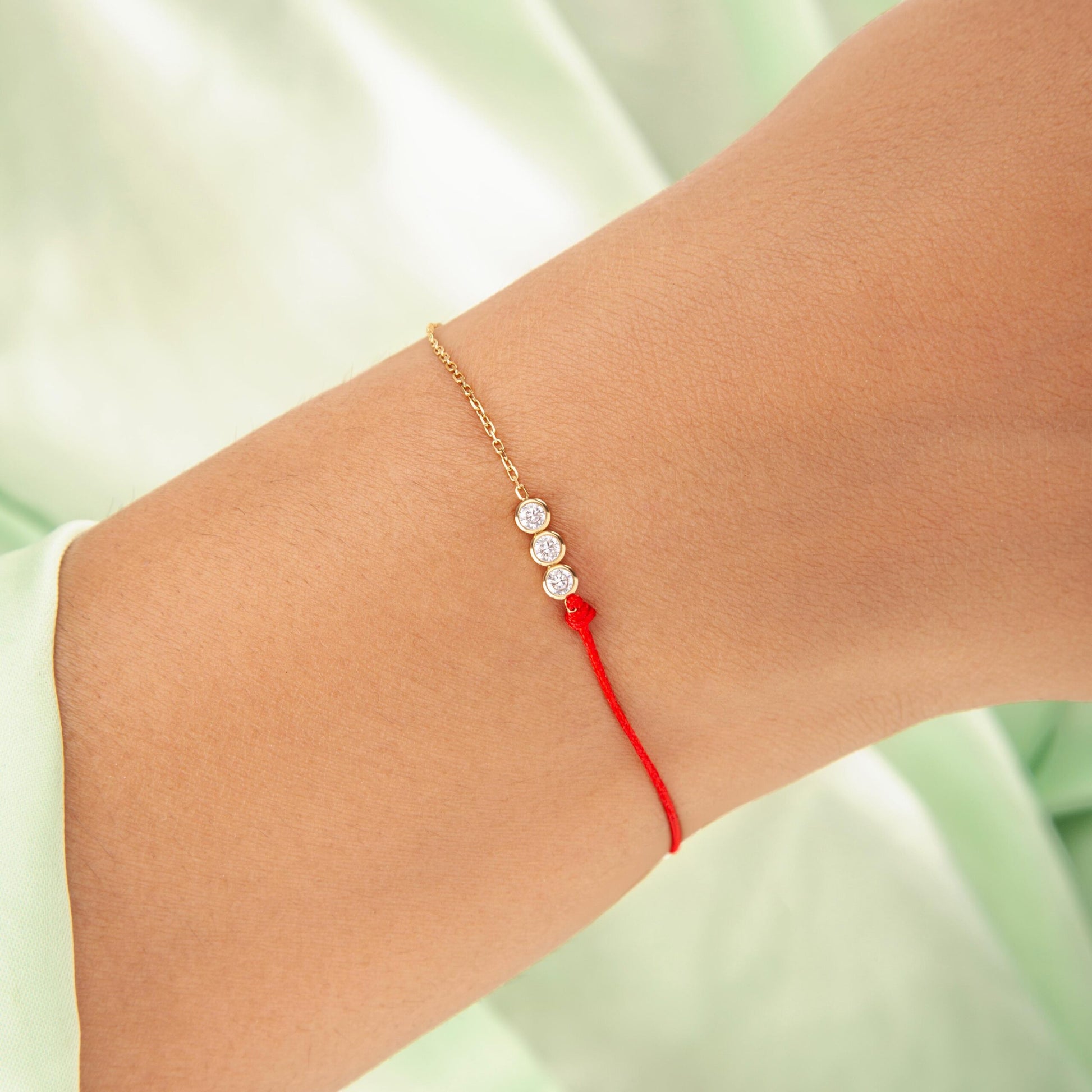 Semi gourmette, semi cordon rouge avec trois petits zircons alignés